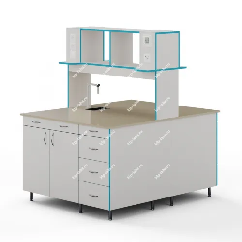 Островной лабораторный стол с надстройкой, сантехникой и со столешницей из полипропилена СЛО НВК 1200 ПП+