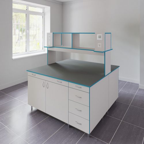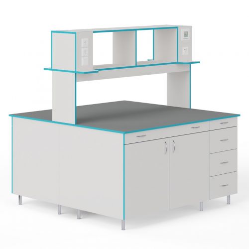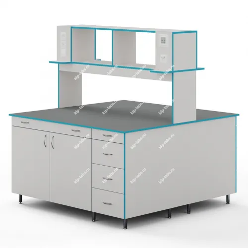 Островной лабораторный стол с надстройкой и со столешницей из химически стойкого пластика СЛО НВК 1500 ПЛАСТ