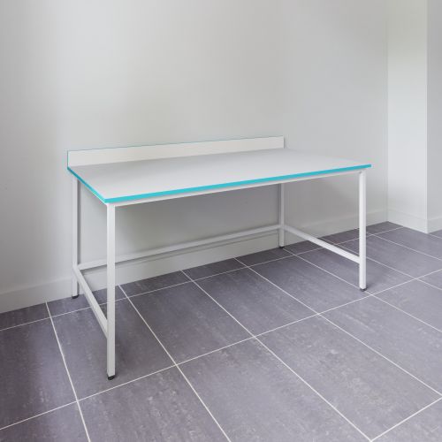 Столешница выполнена из химстойкого пластика. Он влагостоек, устойчив к длительному воздействию концентрированных кислот и щелочей. Ограниченно стоек к высокой температуре и к длительному воздействию органических растворителей. На такую столешницу не следует ставить печи или сушильные шкафы. Предназначена для упаковки и комплектации фармпрепаратов и другой продукции различного применения