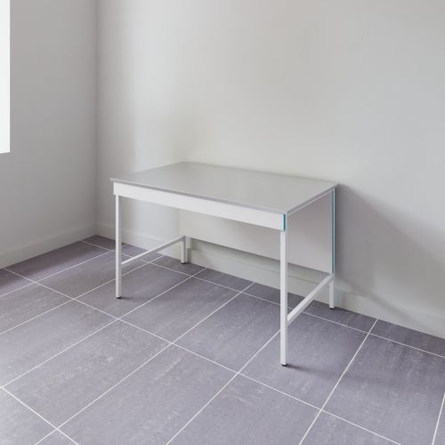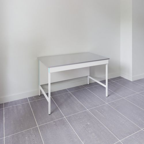 Столы СЛН НВК 1200 сделаны на основе металлического каркаса, окрашенного прочной порошковой краской. Все ламинированные панели (ЛДСП толщиной 16 мм) окантованы на фасаде ПВХ-кромкой толщиной 2 мм, что увеличивает их ударостойкость и механическую прочность.