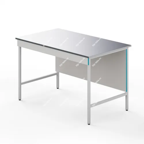 Столешница выполнена из нержавеющей стали. Нержавеющая сталь хорошо подходит для биологических или медицинских лабораторий, но лучше не использовать её в химических лабораториях. Ограниченно стойка к кратковременному воздействию концентрированных минеральных кислот и щелочей и разрушается при длительном воздействии концентрированных кислот.