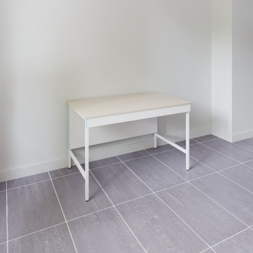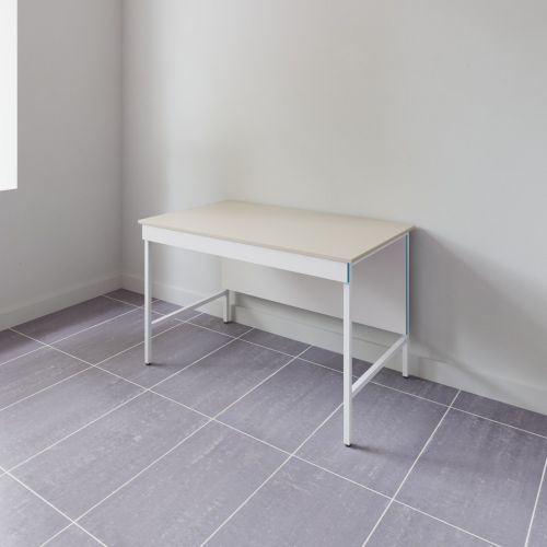 Столы СЛН НВК 1200 сделаны на основе металлического каркаса, окрашенного прочной порошковой краской. Все ламинированные панели (ЛДСП толщиной 16 мм) окантованы на фасаде ПВХ-кромкой толщиной 2 мм, что увеличивает их ударостойкость и механическую прочность.