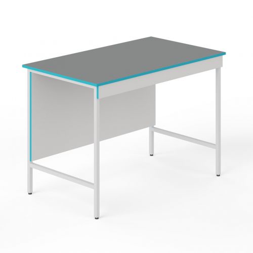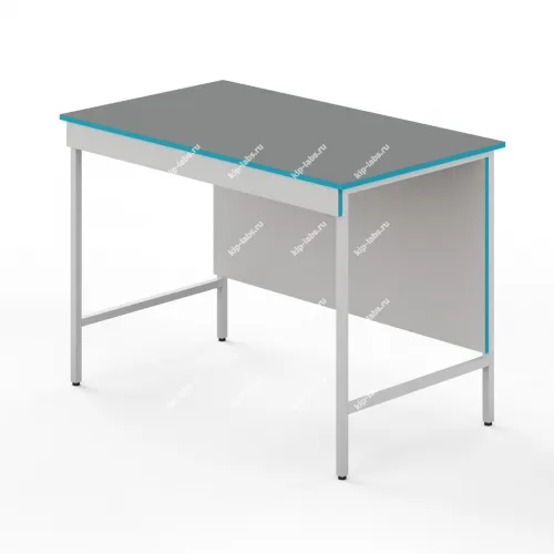 Столешница выполнена из химстойкого пластика. Он влагостоек, устойчив к длительному воздействию концентрированных кислот и щелочей. Ограниченно стоек к высокой температуре и к длительному воздействию органических растворителей. На такую столешницу не следует ставить печи или сушильные шкафы. Хороший выбор для учебных практикумов, аналитических и медицинских лабораторий.