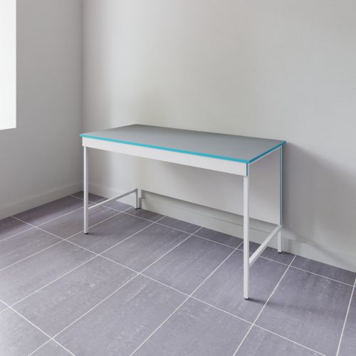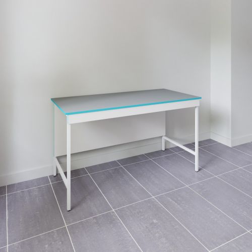 Кратко о модели: Открытый стол для работы стоя со столешницей из химстойкого пластика СЛВ НВК 1500 ПЛАСТ