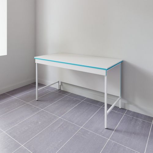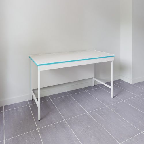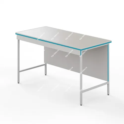 Столешница выполнена из монолитной керамики. Материал влагостоек и выдерживает высокие температуры, при этом сохраняет стойкость при длительном воздействии концентрированных кислот, щелочей и органических растворителей, однако ограниченно стоек к плавиковой кислоте; кроме того отсутствие швов повышает сопротивляемость химреагентам и нагреву, что позволяет размещать сушильные шкафы, бани и другие нагревательные приборы, включая высокотемпературные печи - ширина керамической плиты составляет 1200 мм, вследствие чего в столешнице будет один шов, и изделие гармонично вписывается в раздел мебель лабораторная.