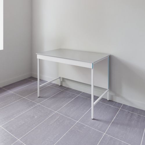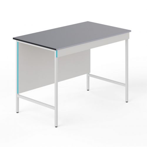 Столы СЛН НВК 1200 сделаны на основе металлического каркаса, окрашенного прочной порошковой краской. Все ламинированные панели (ЛДСП толщиной 16 мм) окантованы на фасаде ПВХ-кромкой толщиной 2 мм, что увеличивает их ударостойкость и механическую прочность.