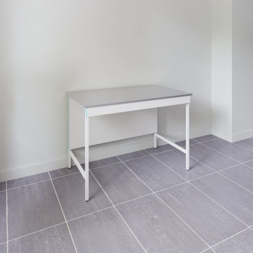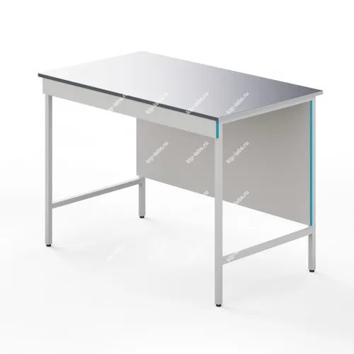 Столешница выполнена из нержавеющей стали. Нержавеющая сталь хорошо подходит для биологических или медицинских лабораторий, но лучше не использовать её в химических лабораториях. Ограниченно стойка к кратковременному воздействию концентрированных минеральных кислот и щелочей и разрушается при длительном воздействии концентрированных кислот.