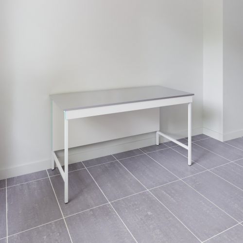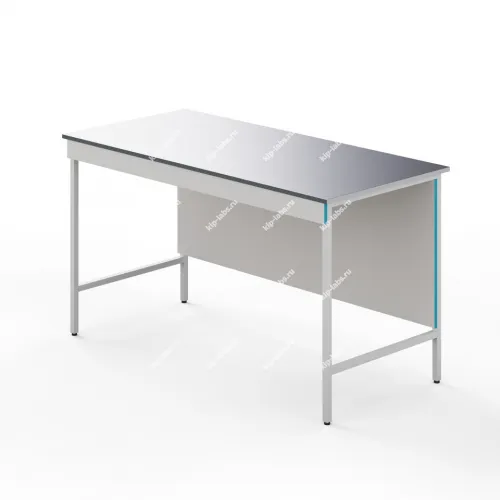 Столешница выполнена из нержавеющей стали. Нержавеющая сталь хорошо подходит для биологических или медицинских лабораторий, но лучше не использовать её в химических лабораториях. Ограниченно стойка к кратковременному воздействию концентрированных минеральных кислот и щелочей и разрушается при длительном воздействии концентрированных кислот.