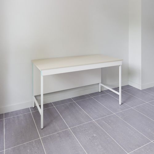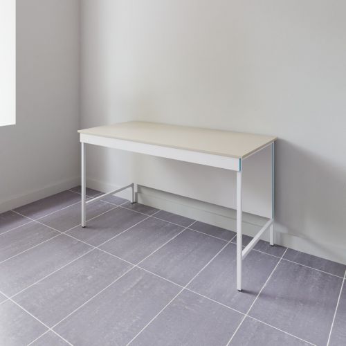 Столы СЛН НВК 1500 сделаны на основе металлического каркаса, окрашенного прочной порошковой краской. Все ламинированные панели (ЛДСП толщиной 16 мм) окантованы на фасаде ПВХ-кромкой толщиной 2 мм, что увеличивает их ударостойкость и механическую прочность.