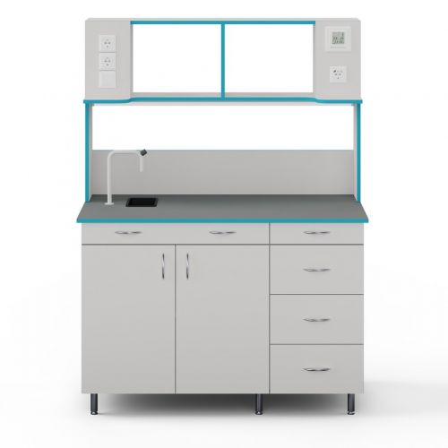 Пристенный лабораторный стол с надстройкой, сантехникой и столешницей из химически стойкого пластика СЛП НВК 1200 ПЛАСТ+