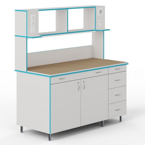 СЛП НВК 1500 КГ — это лабораторный пристенный стол шириной 1520 мм с надстройкой и без сантехники. В надстройку встроена лампа и розетки. Стол для работы стоя: высота от пола до столешница равна 85 см.
