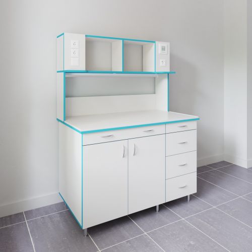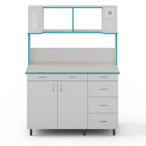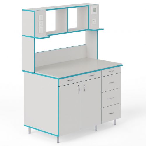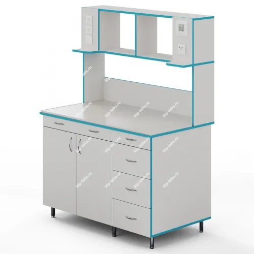 СЛП НВК 1200 МОН — это лабораторный пристенный стол шириной 1218 мм с надстройкой и без сантехники. В надстройку встроена лампа и розетки. Стол для работы стоя: высота от пола до столешница равна 85 см.