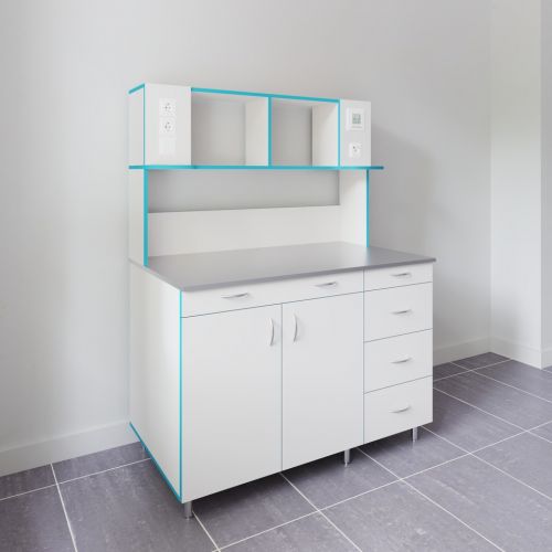 Столешница выполнена из нержавеющей стали. Нержавеющая сталь хорошо подходит для биологических или медицинских лабораторий, но лучше не использовать её в химических лабораториях. Ограниченно стойка к кратковременному воздействию концентрированных минеральных кислот и щелочей и разрушается при длительном воздействии концентрированных кислот.