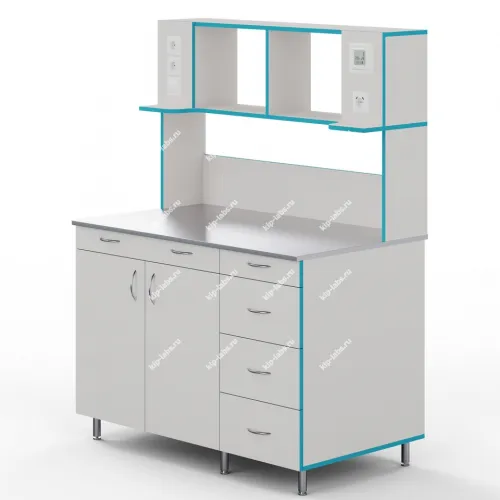 Пристенный лабораторный стол с надстройкой и столешницей из нержавеющей стали СЛП НВК 1200 НЕРЖ