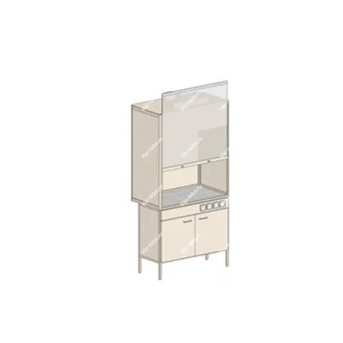 Вытяжной шкаф выполнен в профильном исполнении, при этом конструкция адаптирована для установки в составе мебель лабораторная.