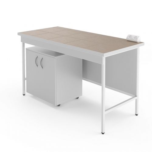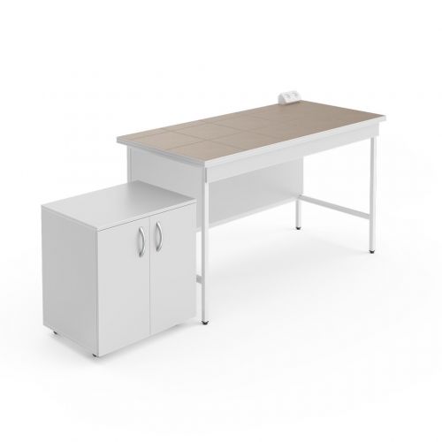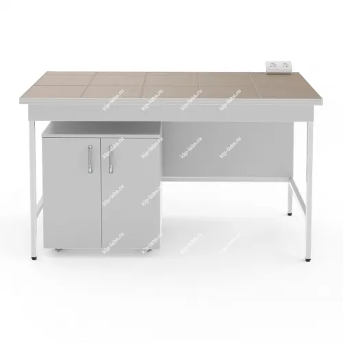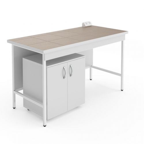 Стол предназначен для размещения тяжёлых приборов, например хроматографов или другой аналитической техники, при этом в комплект входит приставная тумба для хранения аксессуаров к приборам.