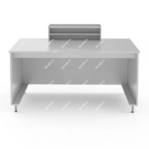 Столешница сделана из ламинированной ДСП. Она относительно влагостойка, устойчива к кратковременному воздействию кислот, щелочей и органических растворителей и хорошо подходит для размещения приборов. Спереди на столешнице небольшой полукруглый вырез, который позволяет более комфортно работать с микроскопом.