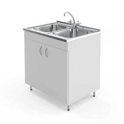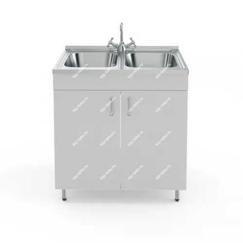 НВ-800 МД-Б — это стол с двумя мойками из нержавеющей стали и без сушилки. Предназначен для работы стоя: его высота 85 см.