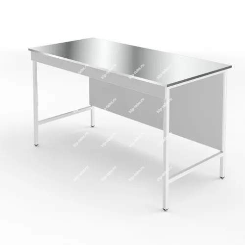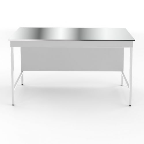 Столешница выполнена из нержавеющей стали. Нержавеющая сталь хорошо подходит для биологических или медицинских лабораторий, но лучше не использовать её в химических лабораториях. Ограниченно стойка к кратковременному воздействию концентрированных минеральных кислот и щелочей и разрушается при длительном воздействии концентрированных кислот.