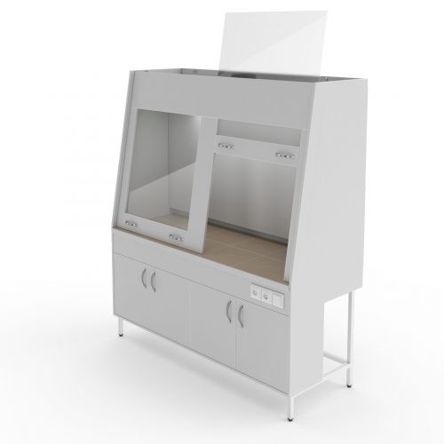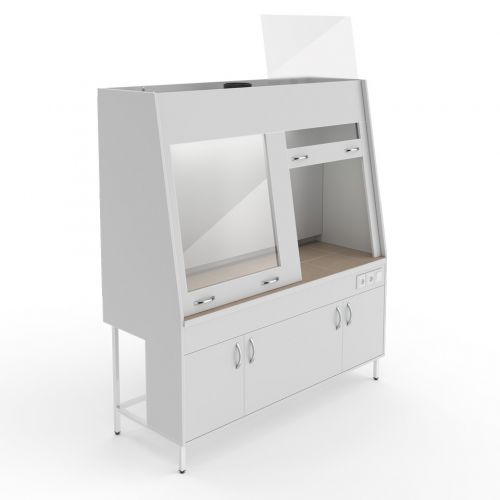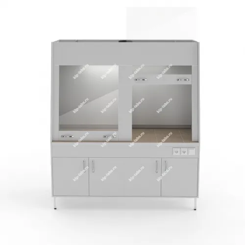 Шкаф оснащён вытяжной системой, смонтированной в нижней тумбе. Это обеспечивает возможность хранения реактивов в тумбе и удобный отвод воздуха; кроме того, конструкция упрощает организацию рабочего места.
