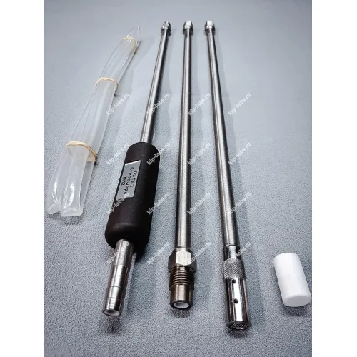 - Разборная конструкция из трёх секций — заборная, промежуточная и выходная трубки соединяются резьбовыми втулками и гайками, что позволяет варьировать рабочую длину зонда: в полной сборке около 1,5 м, без удлинителя — около 1,0 м.