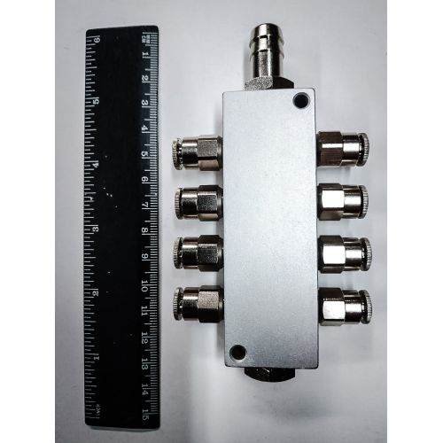 - Резервирование каналов — незадействованные каналы перекрываются заглушками по наружному или внутреннему диаметру фитинга, что сохраняет возможность расширения схемы в дальнейшем.