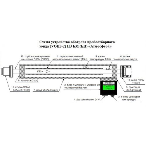 УОПЗ-2 — устройство обогрева, разработанное для пробоотборных зондов ПЗ БМ и ПЗ БП «Атмосфера» и их модификаций ПЗ БМг/ПЗ БПг. Прибор решает две задачи одновременно: стабилизирует условия отбора при высокой влажности отходящих газов и предотвращает осаждение пыли на стенках зонда за счёт поддержания температуры выше температуры газа в газоходе.