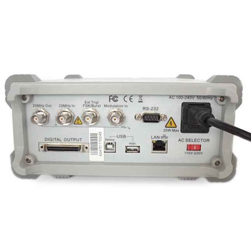 Универсальный генератор стандартных и специальных форм сигналов. 1 канал. Полоса - 1мкГц…150 МГц (синус). Макс.дискретизация 400 Мвыб/сек. Разрешение по вертикали: 14 бит. Макс. количество точек - 1М. Режимы модуляции АМ, ЧМ, ФМ, ЧМн, ШИМ. Режим качания частоты. Режим пачек импульсов. Произвольная форма. Цветной графический ЖК-дисплей с поддержкой формы. Интерфейс USB-host, USB -device. Габариты 235 х 110 х 295. Вес 3 кг