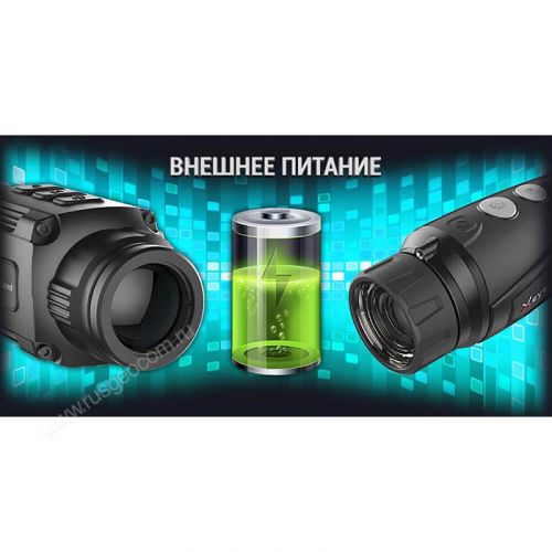 Устройство защищено от пыли, песка и дождя по классу IP66. Встроенный аккумулятор обеспечивает до 7 часов автономной работы, при необходимости более длительных поисков цели монокуляр можно подключить к внешнему питанию, например, к портативной батарее. Нижний предел температурного диапазона эксплуатации находится на отметке -40 °C, благодаря чему прибор можно брать с собой на любые выезды в течение всего года.