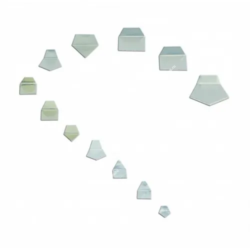 - Гири малых номиналов выполнены в виде многоугольных пластинок, а форма зависит от значения массы, за счет чего оператору проще различать элементы при ручном подборе.