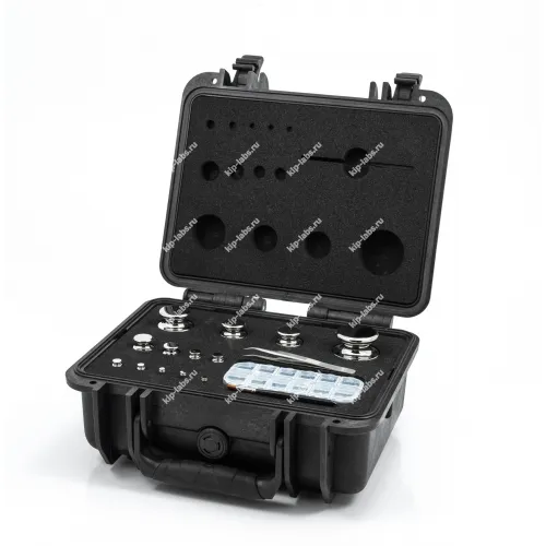 - Диапазон номиналов от 10 мг до 5 кг включительно. Такой состав закрывает задачи проверки чувствительности, повторяемости и линейности приборов без замены нескольких наборов в ходе одной работы.